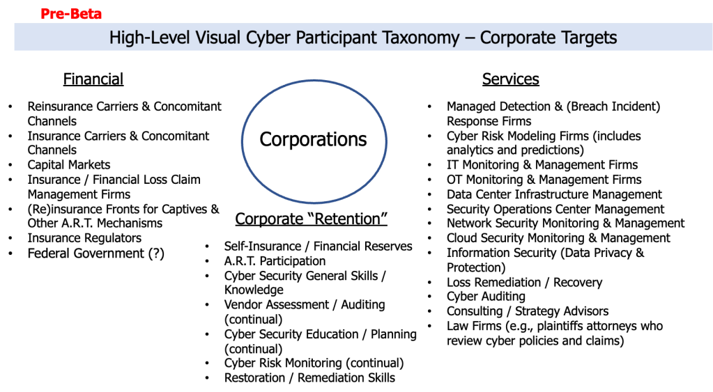 However, the following visual captures my initial perspective of the high-level participants who do or could assist corporations before, during, and/or after they are cyber-attacked.