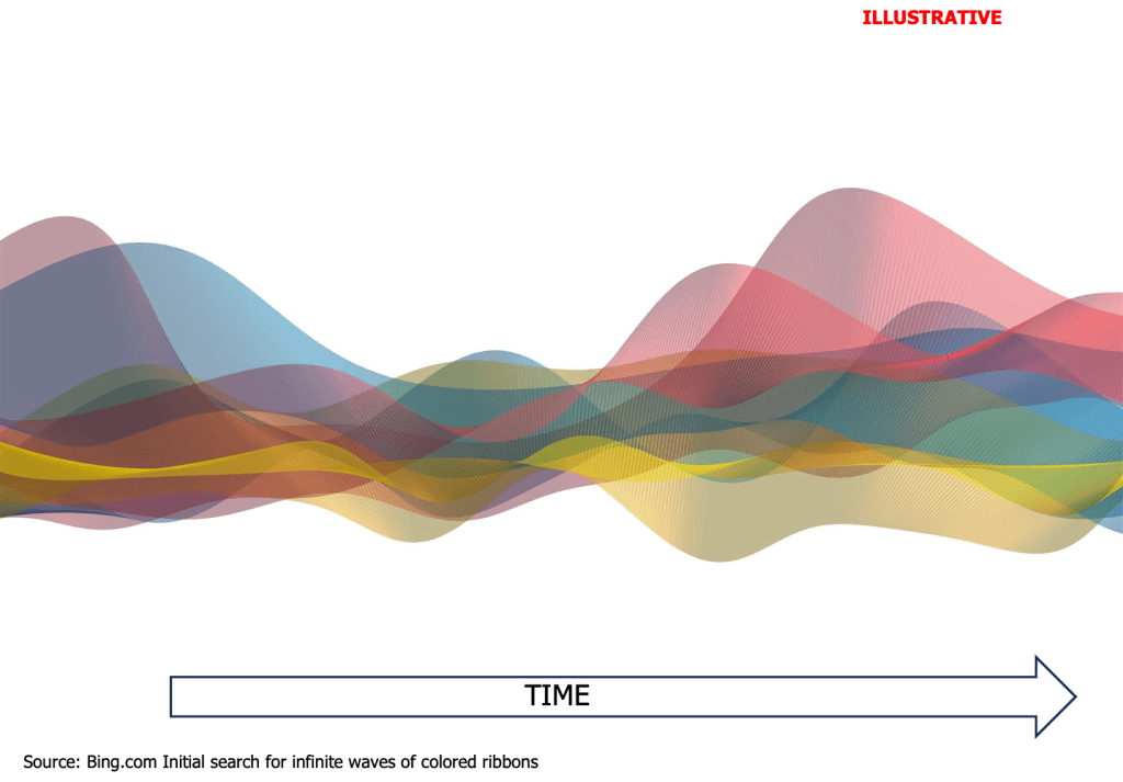 - each wave represents one cyber attack space unfolding through time into infinity without end;